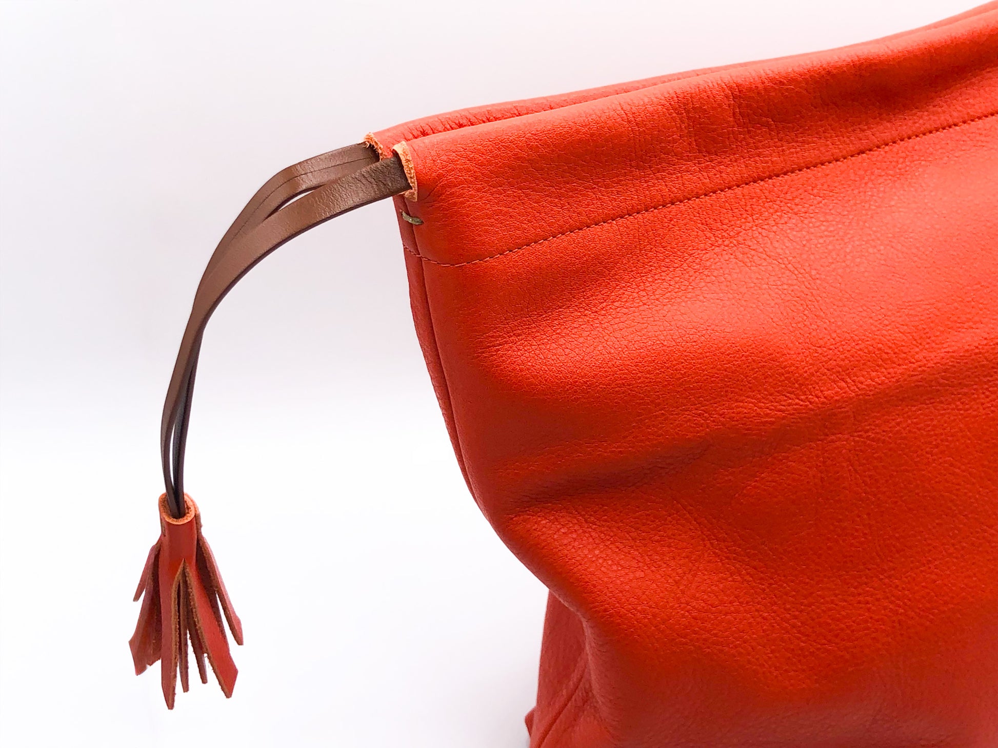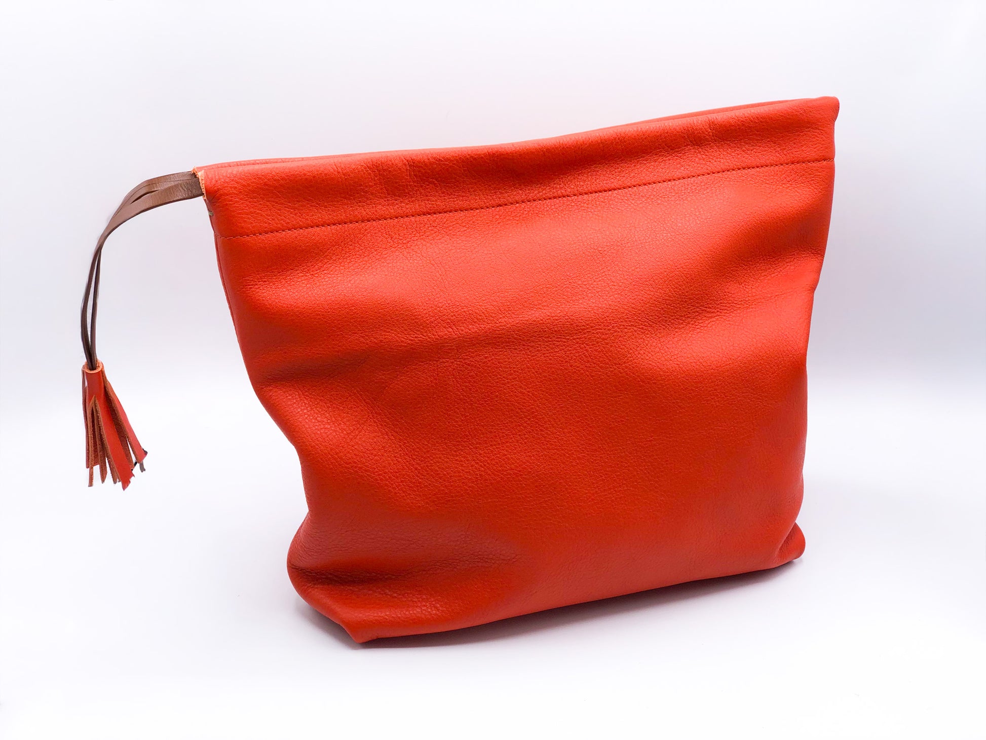 Pochette in morbidissima nappa, sfoderata e dal design semplice ed essenziale. La chiusura è caratterizzata da un laccio in cuoio nero per la pochette nera e in cuoio marrone per gli altri colori, arricchito da una nappina in pelle coordinata. Completa il tutto un magnete che permette di chiudere la borsa facilmente.